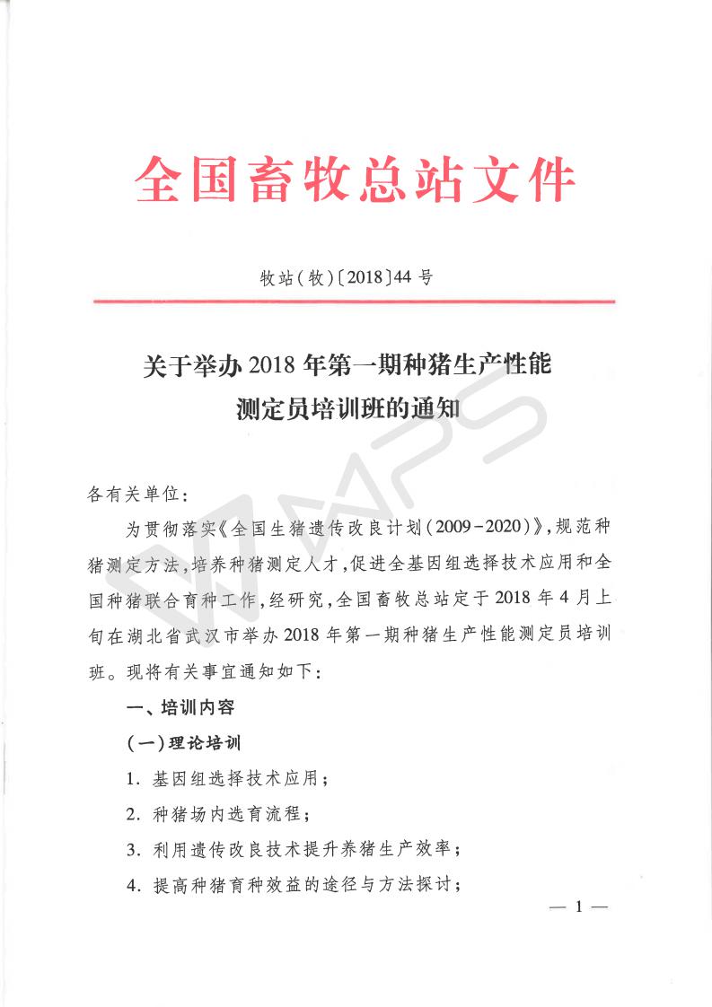 关于举办2018年第一期种猪生产性能测定员培训班的通知